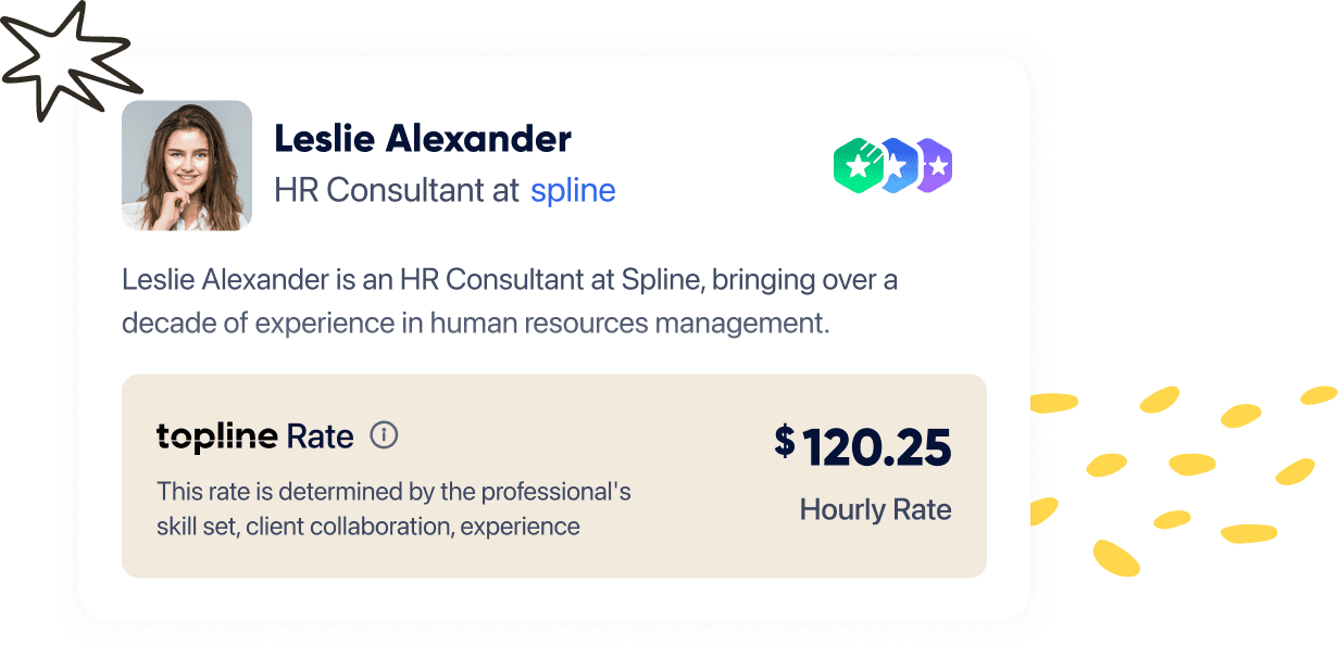 Most calculators rely on self-reported salary surveys or narrow employment data sets. Topline Rate pulls from 200 million+ verified professional profiles—including freelancers, fractional executives, and boutique firms—then applies AI to match on skills, credentials, and current market demand. That means you get a real-time, skills-based rate range (not a lagging industry average) and insights tailored to independent, project-based work as well as full-time roles.